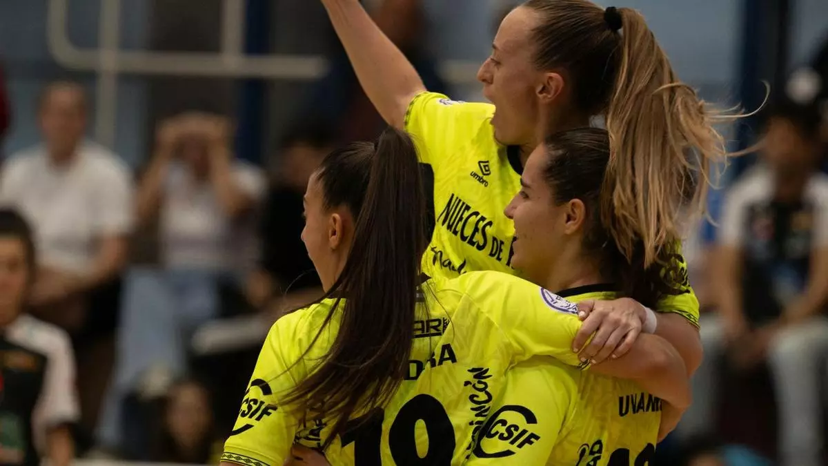 Las jugadoras del Nueces de Ronda celebran un gol en el partido jugado en Móstoles. / La Opinión