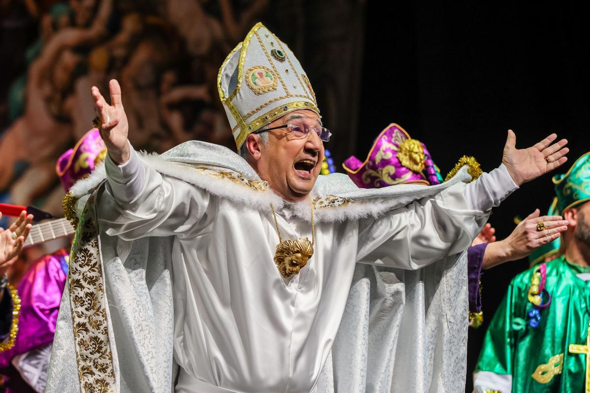 La murga de los Leones, con su propuesta 'Mira si tenemos fe, que lo intentamos otra vez', en la segunda preliminar del COAC del Carnaval