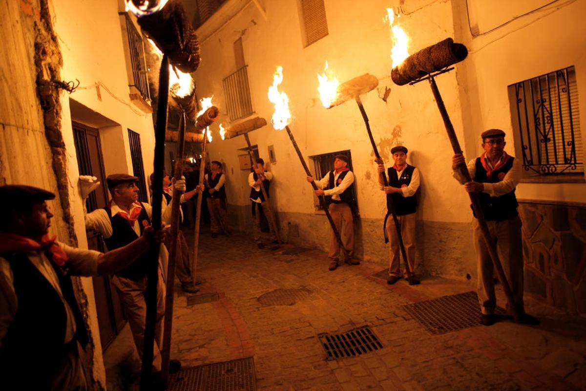 La localidad de la Sierra de las Nieves se llena de luz debido a la quema de los rondeles, antiguos capachos de esparto que se usaban en las prensas de los molinos de aceite para molturar la aceituna. / Jon Nazca (Reuters)