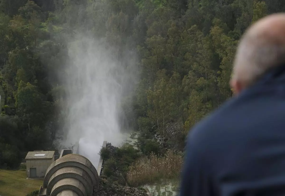 Varias personas observan el desembalse de la presa de Casasola / eFE