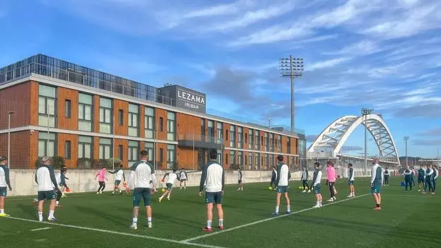 El Málaga CF se ejercitó en Lezama (Bilbao) en el día previo al partido de este lunes frente al Mirandés. / Málaga CF