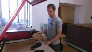 Sin apenas capital para invertir, un arriateño ha desarrollado un innovador negocio mobiliario a partir del cartón reciclado