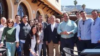 El líder provincial del PP, ayer en Pizarra, rodeado de cargos de su formación en la comarca. / L. O.